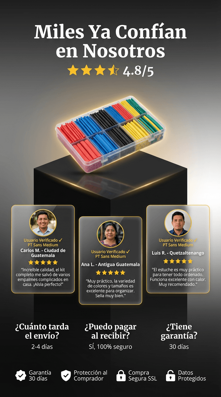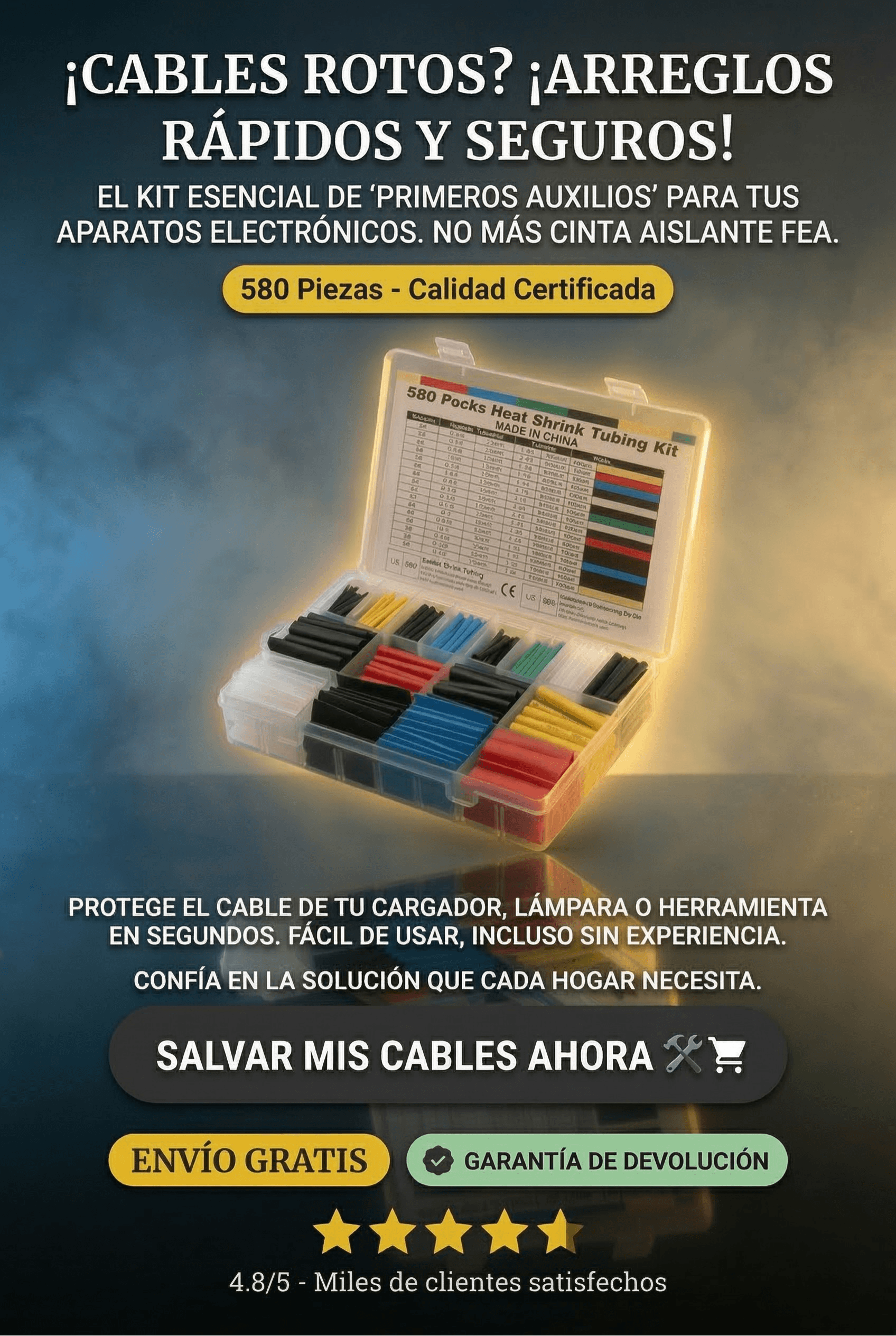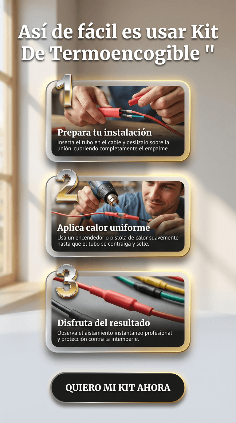 ¿Cables Rotos o Desordenados? ¡Arreglos Rápidos y Profesionales! Elimina el desorden y riesgos. Este kit de 580 tubos termoencogibles sella, protege y organiza tus cables en segundos contra agua y desgaste, incluso sin experiencia.