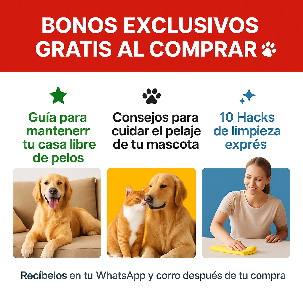 Elimina los pelos de tu mascota en segundos, sin rodillos desechables.